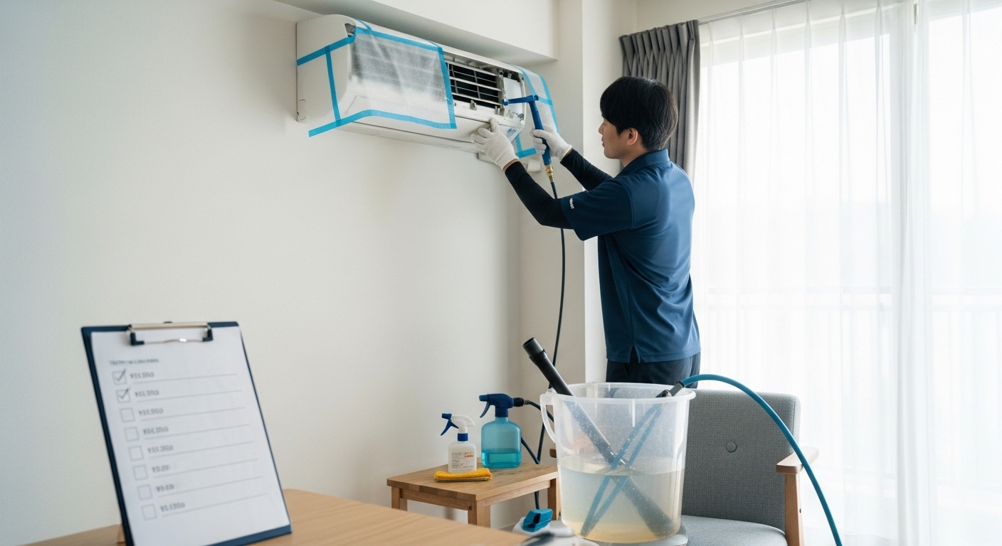 「お掃除機能付き追加料金」「駐車場代・出張費」「キャンセル料」「作業時間の目安」を事前に書面またはメールで確認することが大切です。
