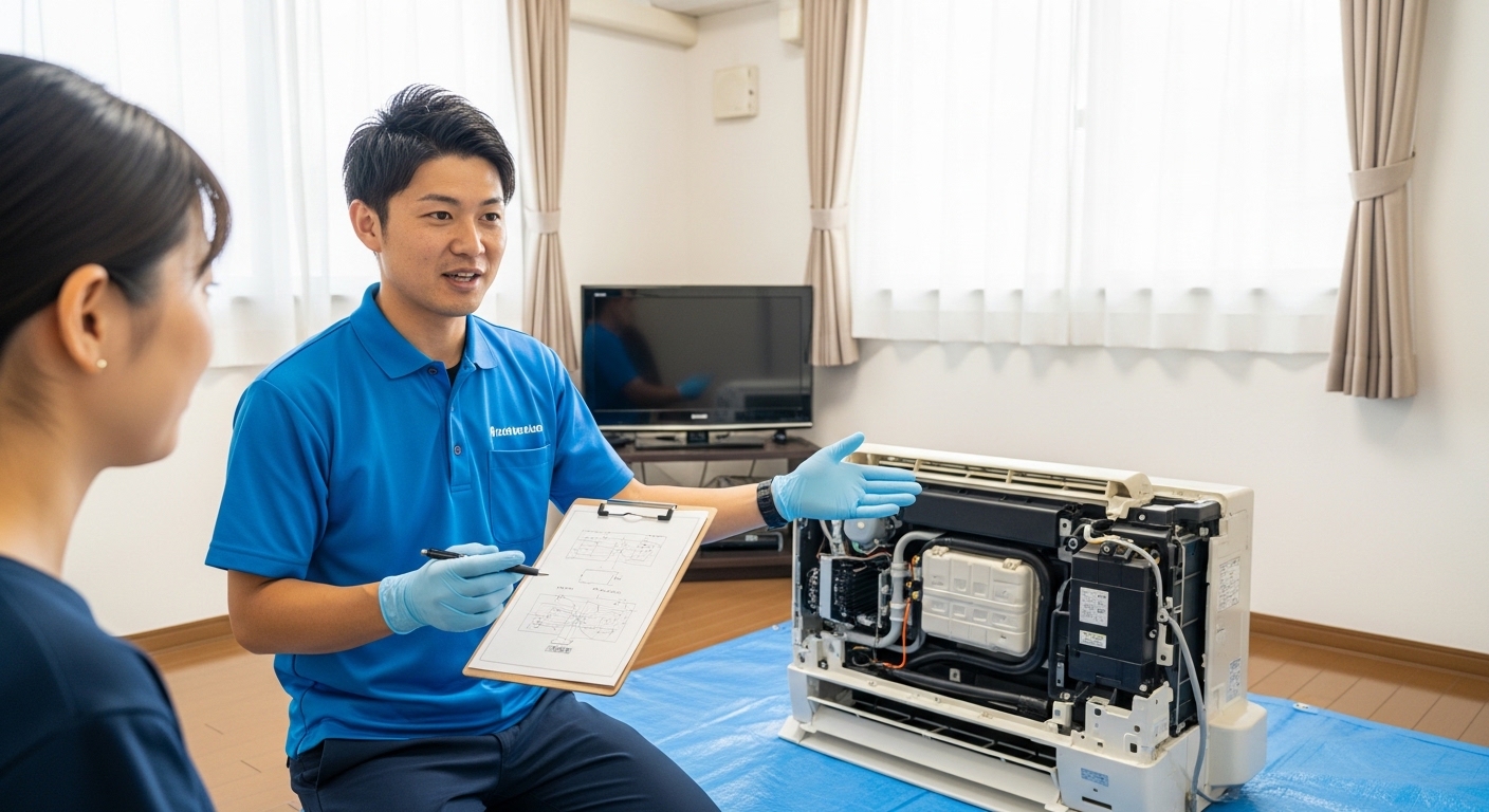 「通常清掃」と「完全分解クリーニング」は、目的も効果も別物です。完全分解は、内部パーツまで分解して洗浄することで、カビ・臭い・故障リスクを根本から減らし、電気代や買い替えコストを含めたトータルコストを最適化する方法です。