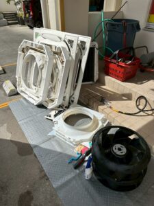 「完全分解と通常洗浄の一番の違いは、壁から外すかどうかとどこまで部品をバラすかです。」